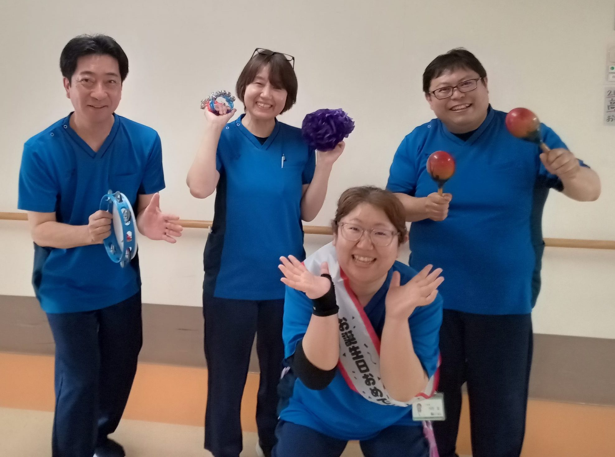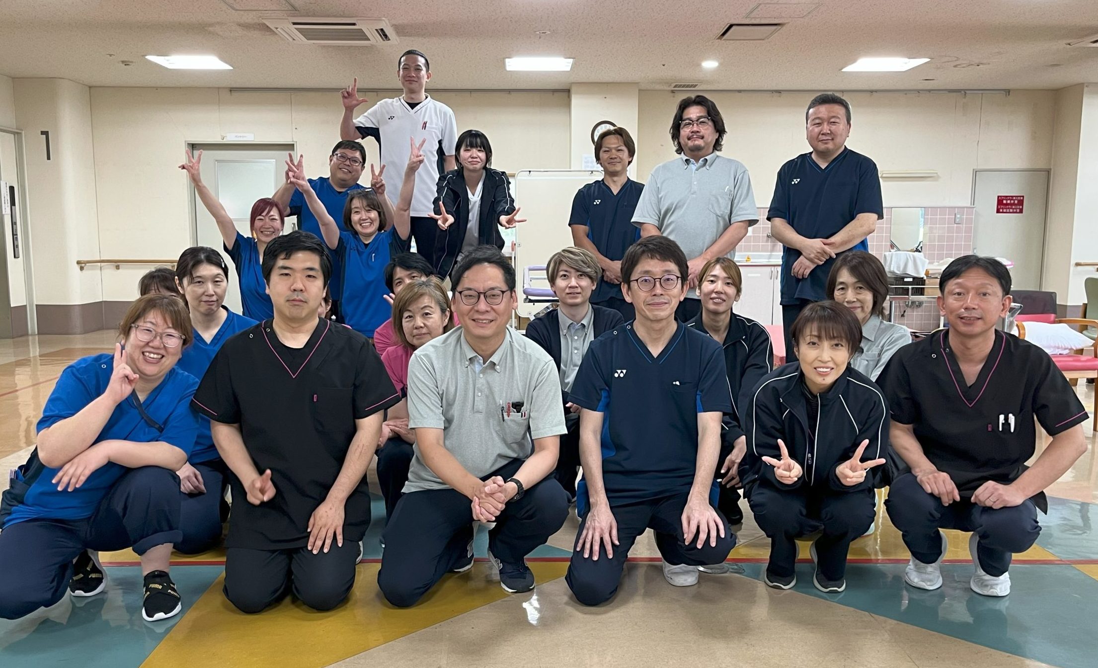 デイルームは比較的広く設計されておりますので、フロアでのリハビリ(生活リハビリ)、集団リハビリ(嚥下体操や各種アクティビティ活動など)が行えます。スタッフステーションは、各種の記録・準備作業だけではなく多職種でのカンファレンスルームとしても使用されています。